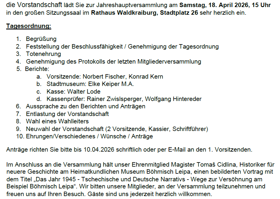 Zunächst ist ein Bericht von Konrad Kern zu lesen. Darin geht es letztlich um die Fortsetzung der Beziehungen zwischen Ceska Lipa und Waldkraiburg, die im vorherigen Heft mit einem Bericht von Tomas Cidlina begonnen hat.