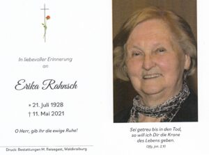 Tod von Gründungs- und Ehrenmitglied Erika Rahnsch |